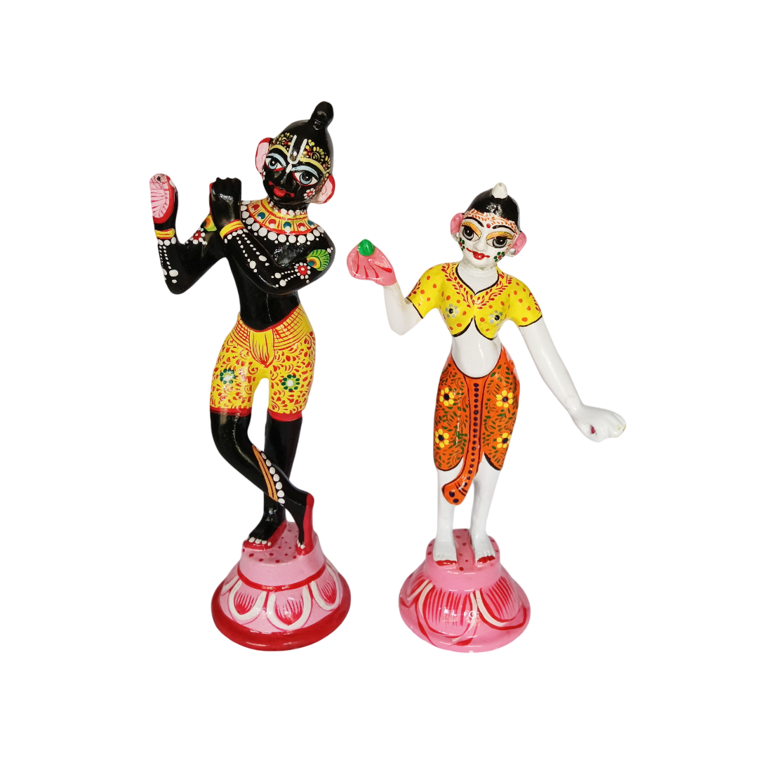 This Radha Krishna Idol captures the essence of Vrindavan – the eternal bond of love and devotion. With its 7.5-inch Krishna idol, 7.2-inch Radha idol, and 1.4-inch lotus base, it becomes a perfect blend of spirituality, tradition, and artistry.