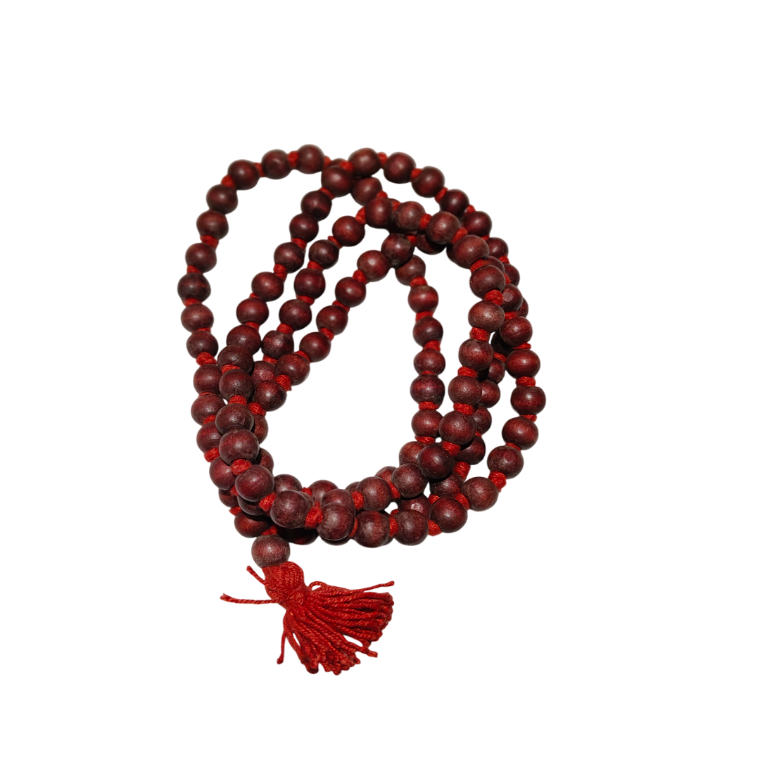 Elevate your spiritual practices with this Red Chandan Mala, crafted from authentic sandalwood beads (Chandan). This 108-bead mala is perfect for japa meditation, mantra chanting, and daily spiritual use. Each bead carries the natural fragrance and cooling properties of sandalwood, helping calm the mind and focus the heart.